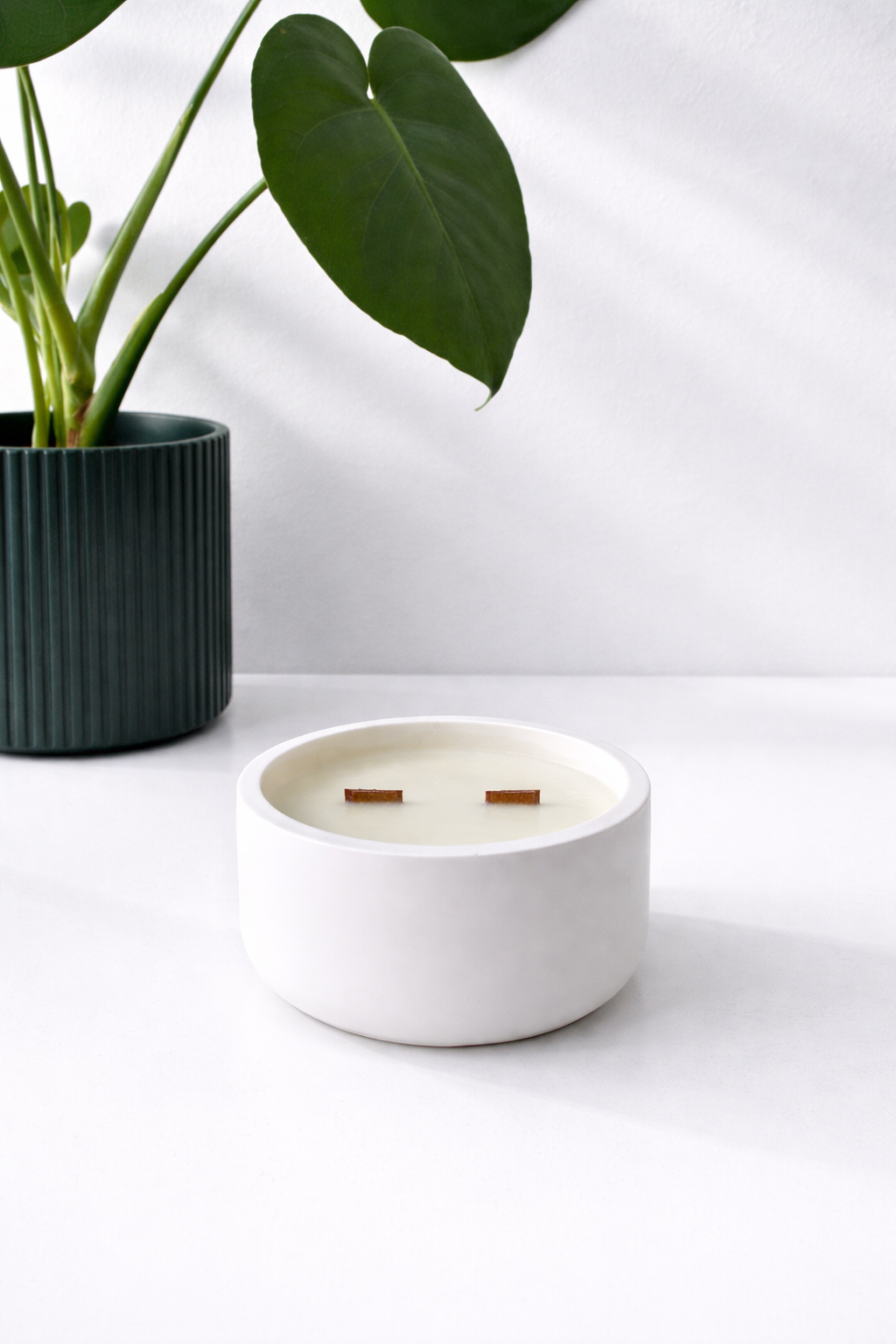 Presentada en un recipiente de resina natural hecho a mano, cada pieza tiene acabados únicos que la convierten en un objeto decorativo además de sensorial.
