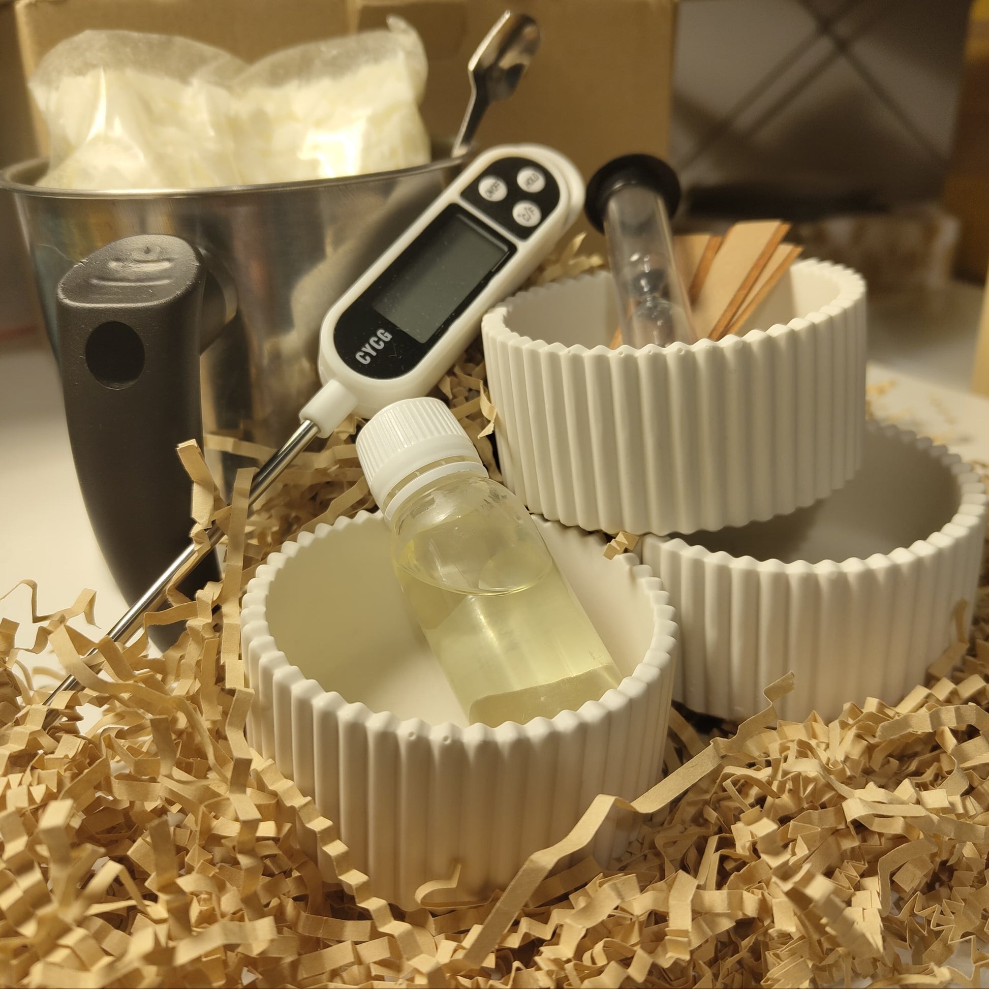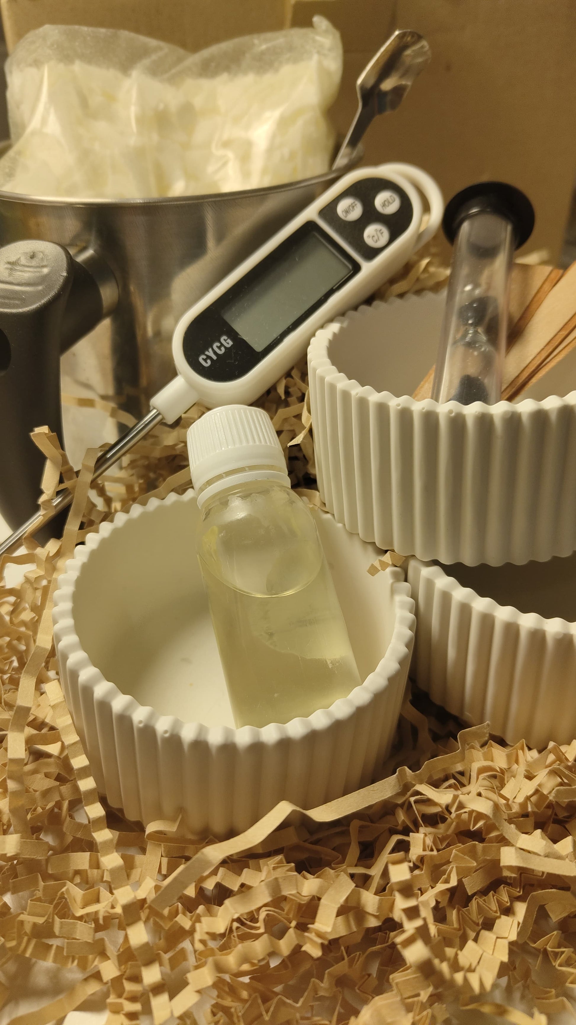 Este kit ha sido diseñado para que disfrutes del proceso de principio a fin: fundir la cera, añadir la fragancia, verter con calma y contemplar cómo tu propia luz cobra vida. Incluye todos los materiales necesarios y las cantidades ya medidas, para que solo tengas que dejarte llevar por la experiencia.